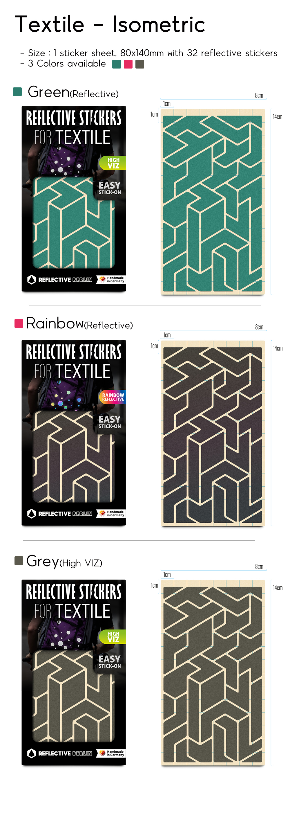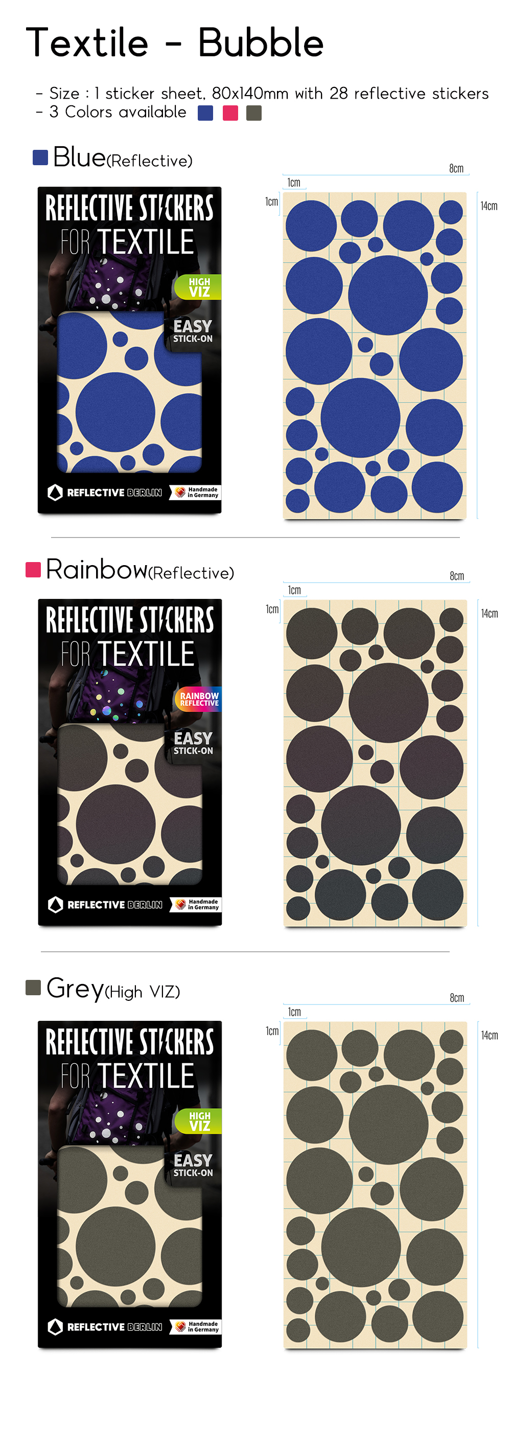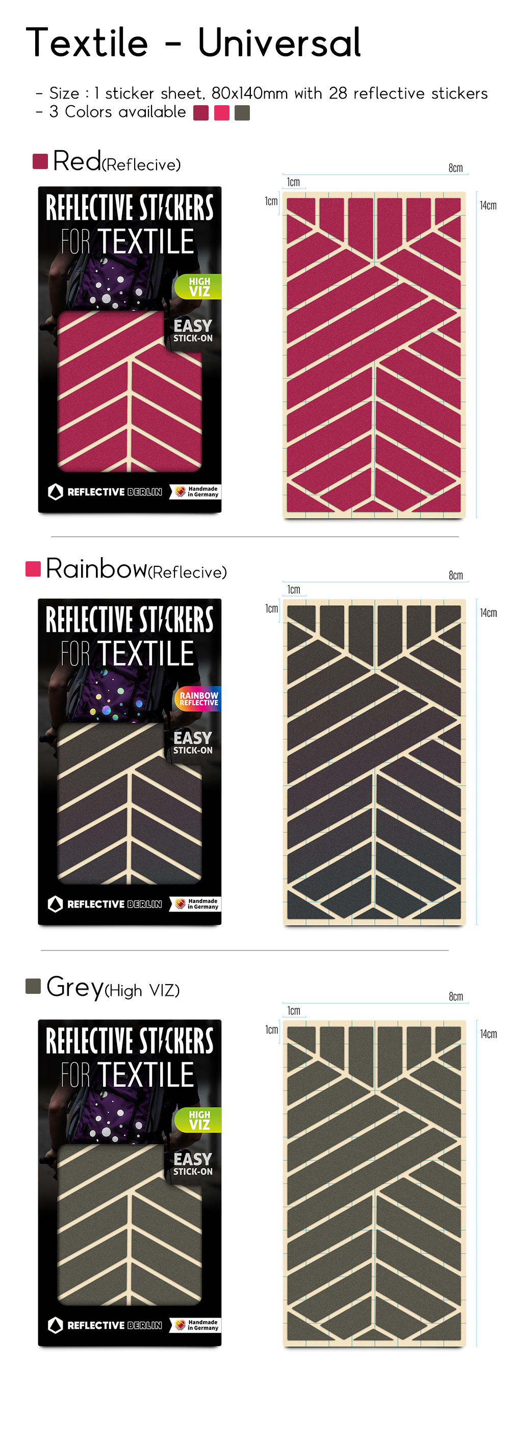 - 먼 거리에서도 가시성을 더해주는 반사스티커입니다. 단, Rainbow 색상의 경우 단색(Grey) 색상만큼 반사 휘도가 높지는 않습니다.