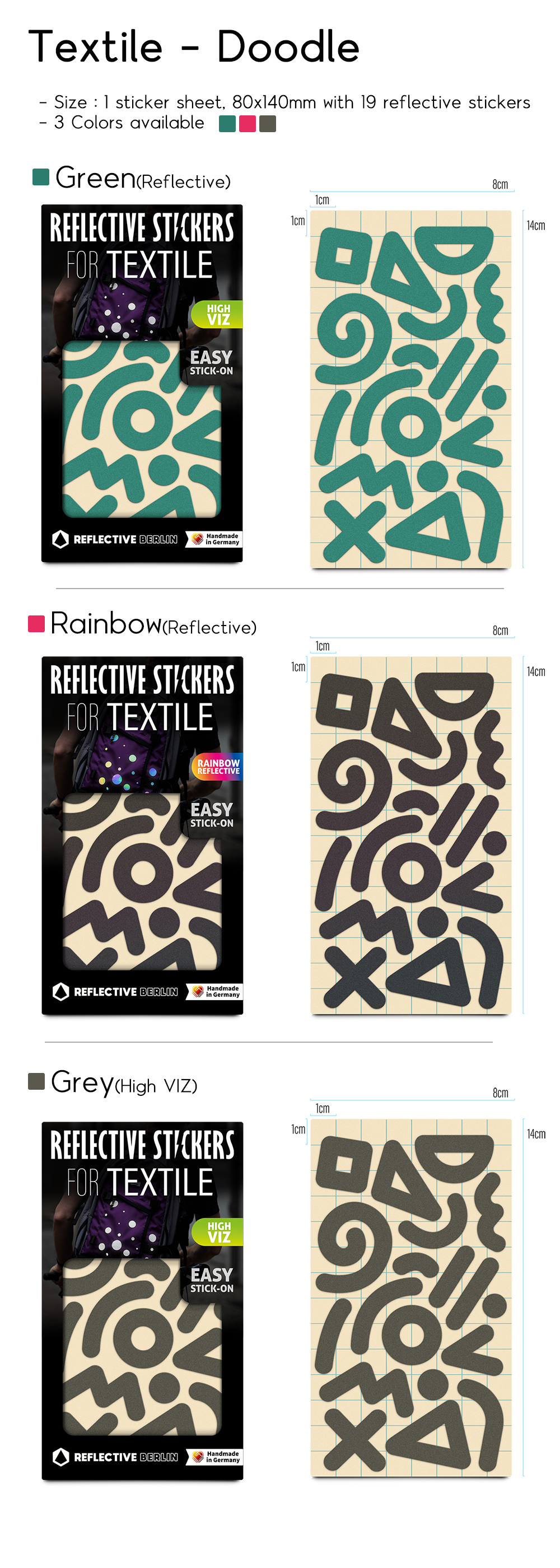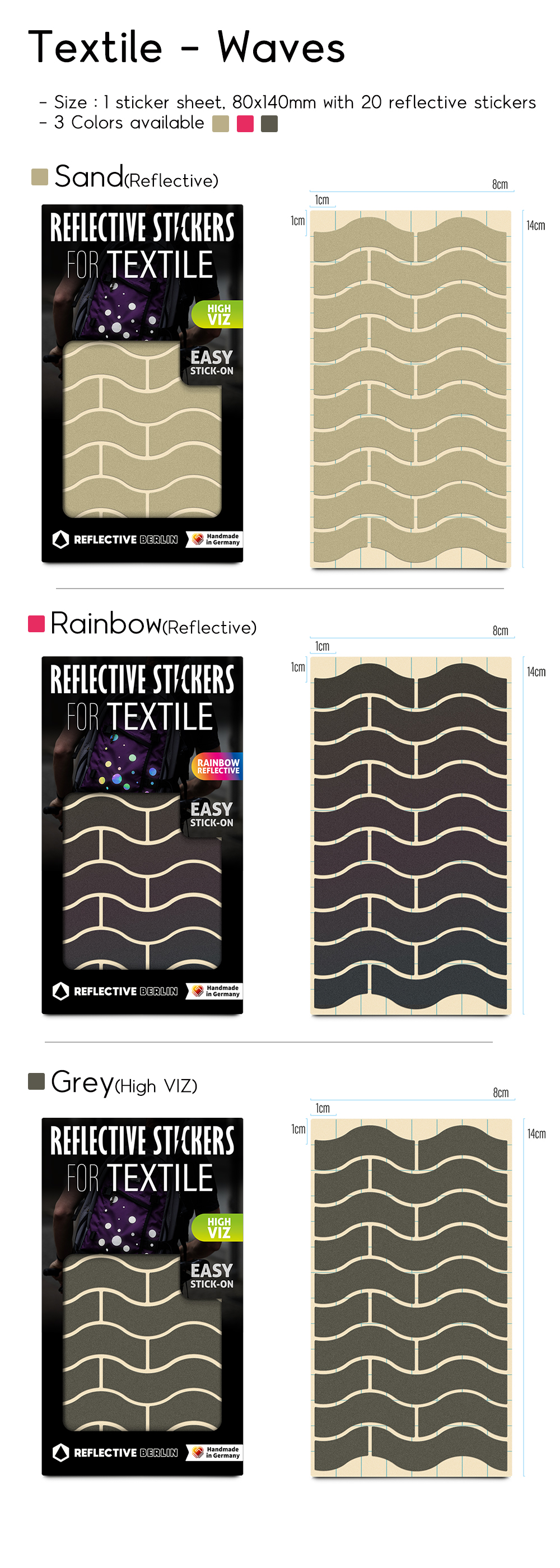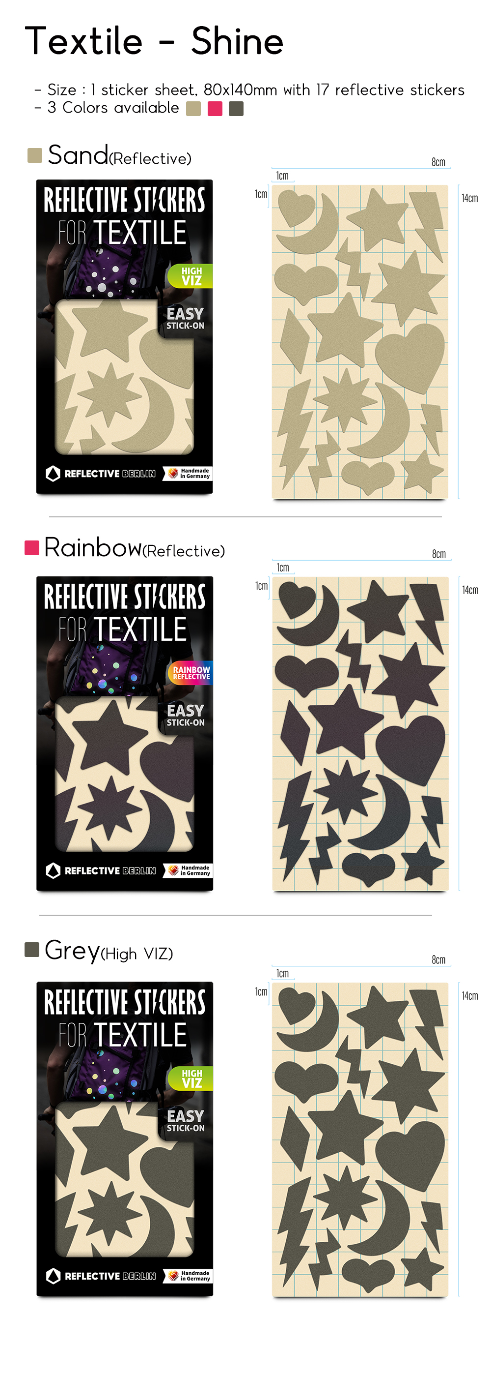- 먼 거리에서도 가시성을 더해주는 반사스티커입니다. 단, Rainbow 색상의 경우 단색(Grey) 색상만큼 반사 휘도가 높지는 않습니다.