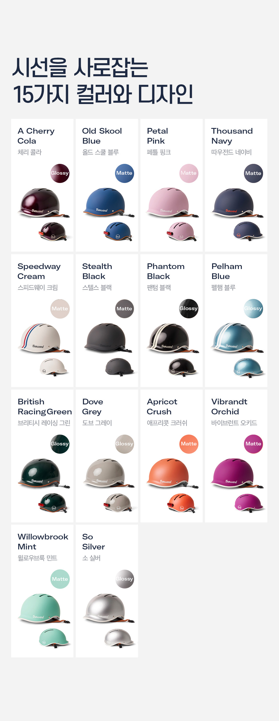 따우전드 헬멧의 일부 디자인은 매트한 표면 질감 특성상 손자국 등이 묻을 수 있습니다.